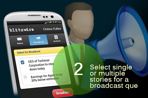 The Online Editor's Inbox has the option to approve a Contributor's Blitzwire for immediate broadcast, edit its story synopsis, or archive it for a future broadcast.